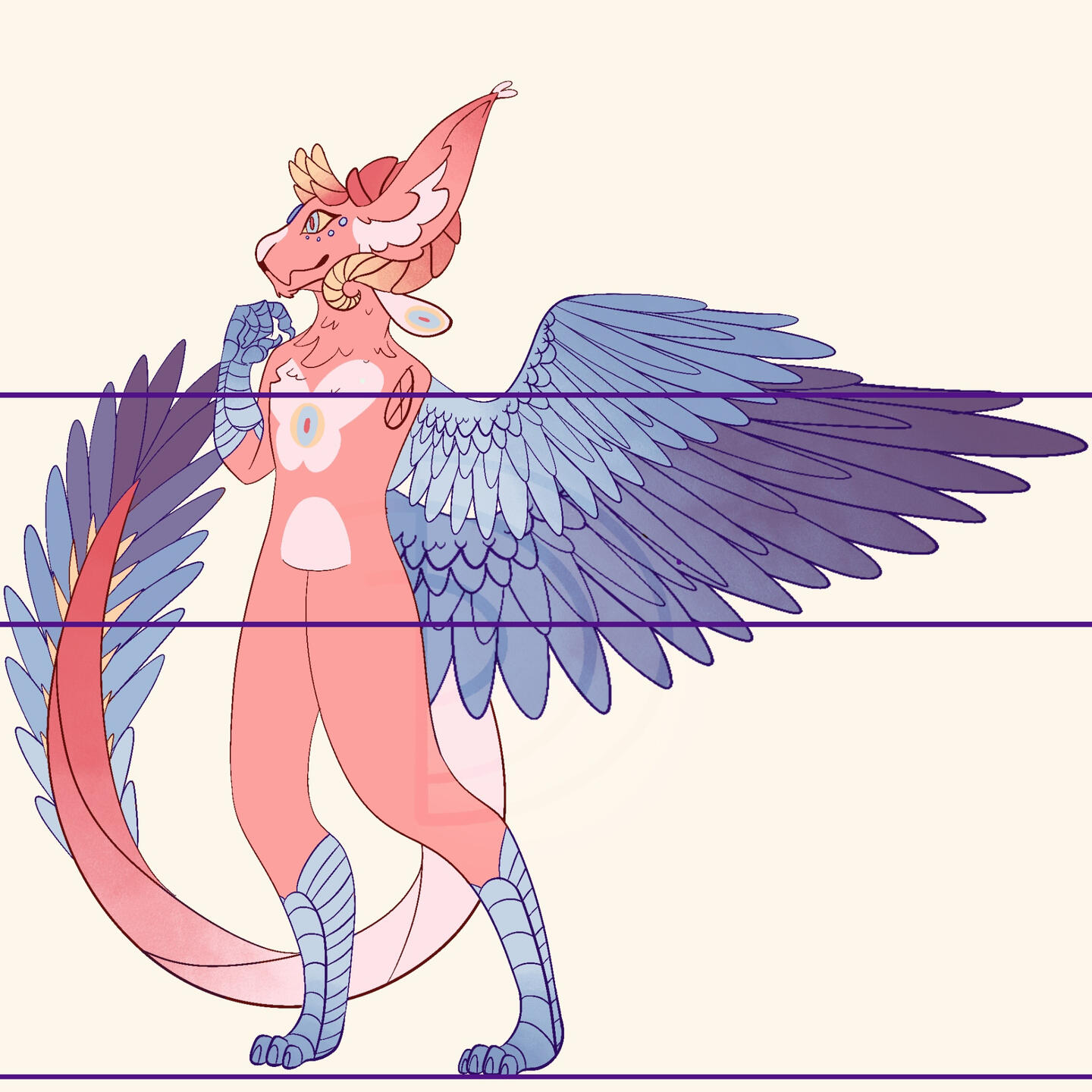 When making a custom design, I work closely with the buyer to ensure we come to a design they love. The buyer will give me any design elements (species, colors, outfits, patterns, weapons, etc.) they wish to see and once I finish a "final" design, I will forward it to them. They will then say what they may want to keep or change and I will adjust the drawing as such. This continues until the buyer is happy with the work I produced.